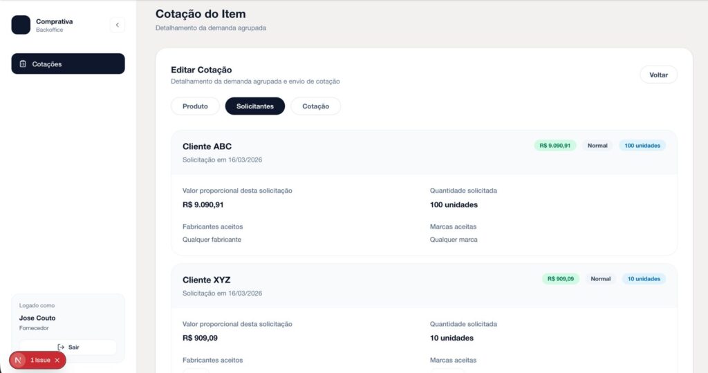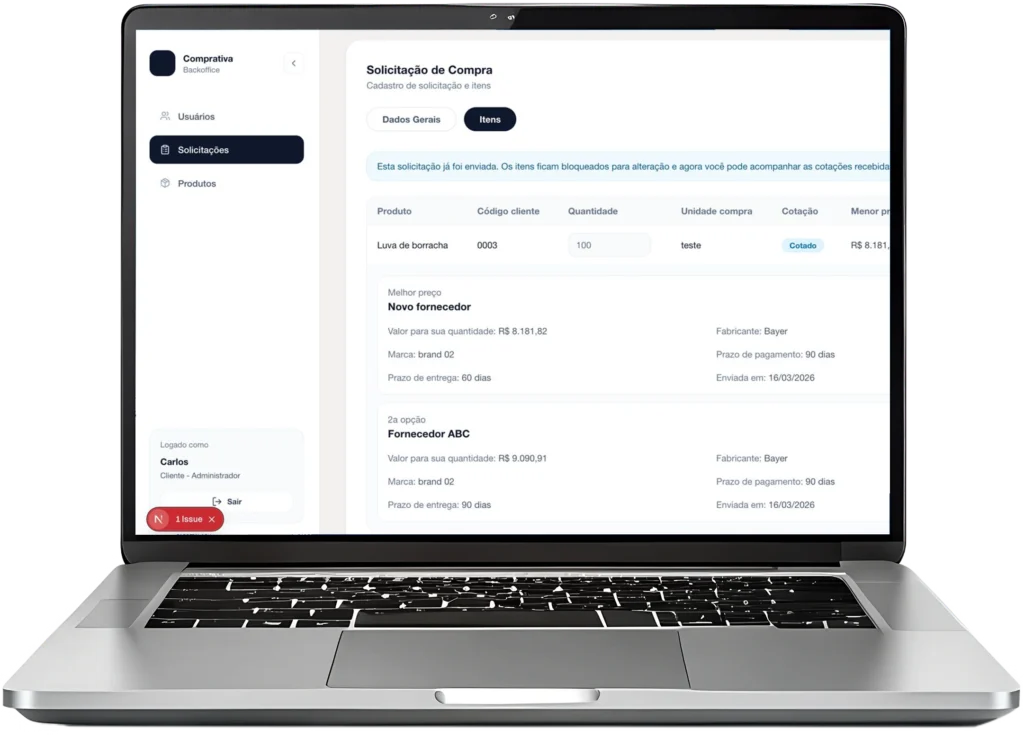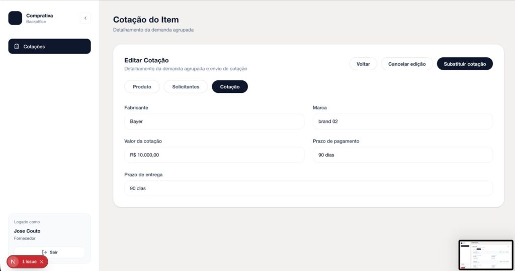 Renegocie itens específicos sem refazer toda a cotação. Economiza onde importa e acelera a decisão.